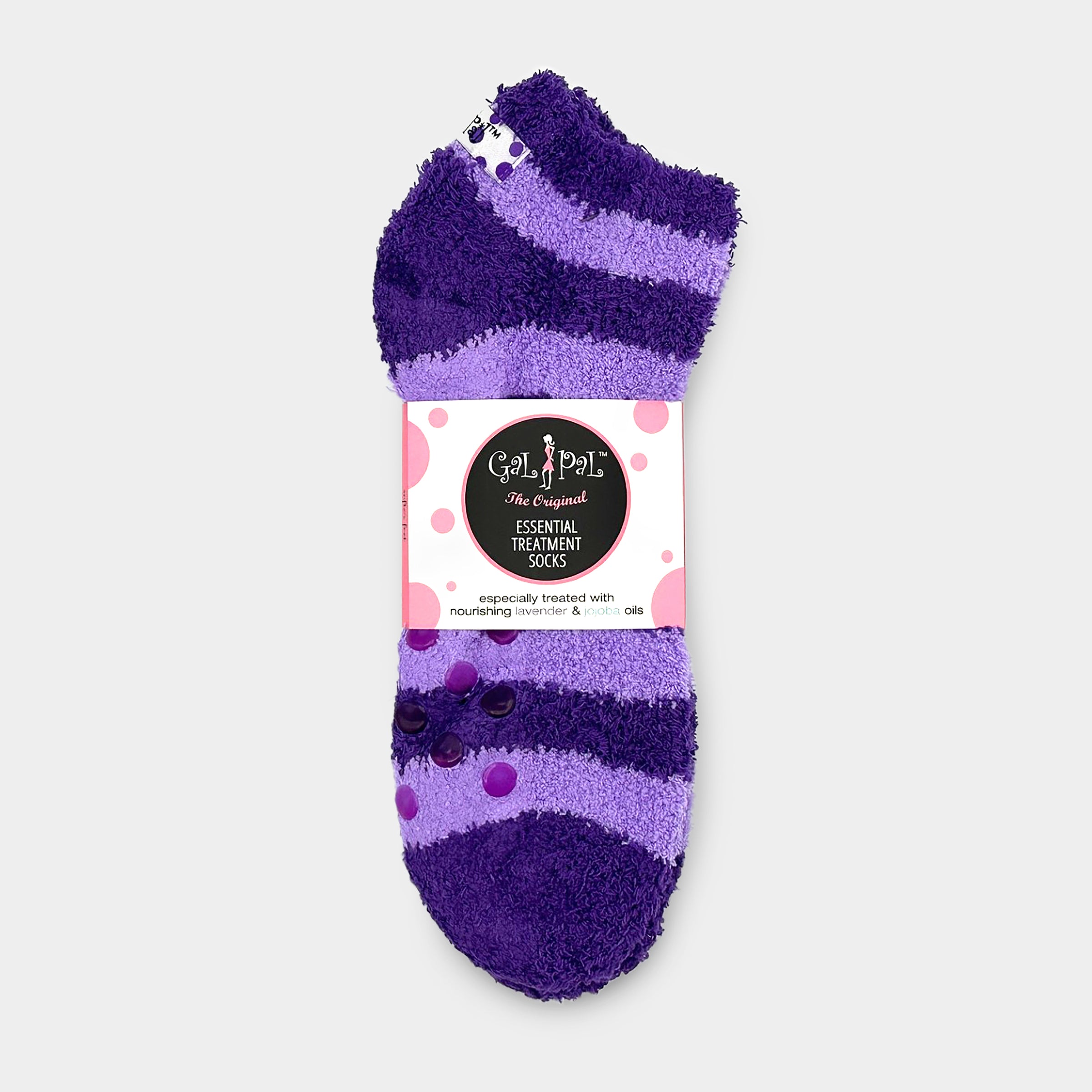 Gal Pal Essential Treatment Socks have been specially treated with nourishing oils of lavender & jojoba to deeply hydrate as they cradle feet in ultra-lofty comfort with non-slip bottoms.